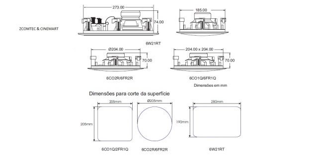 ■ Alto-falantes de 6" do tipo coaxial (6CO2R/6CO1Q) e full range (6FR2R/6FR1Q) que utiliza calota difusora de agudos e no modelo 6W21RT utiliza sistema de duas vias, sendo elas um alto-falante de 6" e um tweeter .