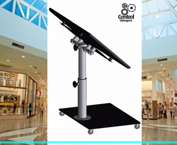 Suporte TV Monitor Totem C/ Rodízio Inox Polido 57/84cm Z2850 Centrel Usinagens